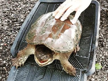Many videos are available online to view on assisting turtles across the road, each offering a demonstration and pointers. For people new to helping turtles, you need to know that the snapping turtles often used in videos appear passive. These are 'teaching turtles used by conservation organizations with permits for turtles to be used in such ways for educational purposes. These turtles are used to being handled a lot by their permit holders and often appear calm and passive in videos. In the wild, a snapping turtle you encounter on the road may appear passive at first, but once you approach the turtle to assist them, they will snap, swing around to face you, and lunge in your direction. This behavior can make them appear aggressive. The snapping turtle is not looking to attack you. The turtle is looking to protect itself. It is worth noting that when we approach a turtle in the wild for any reason, even if well intended to assist the turtle across a road, we know we are there to help the turtle; they do not know this and perceive us as a large menacing predator. As such, they understandably revert to 'self-preservation' mode.