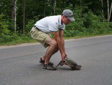 Dropping a turtle from even a short distance can cause injury. Please keep in mind that from mid-May to mid-July, many turtles crossing roads are egg-laden females looking for appropriate nesting sites. June is the peak month for nesting.