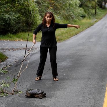 ASSISTING A TURTLE ACROSS THE ROAD (Graphic)