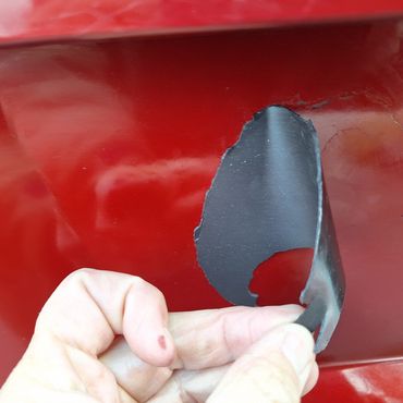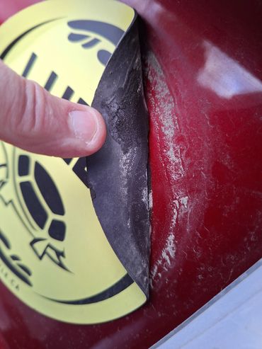 Heating the rest of the car magnet that is adhering to your vehicle with a hairdryer on medium setting will weaken the bond between the vehicle's body and the magnet. The magnet will soften and become pliable to the point that you can peel it off in pieces or its entirety. DO NOT USE A HEAT GUN). DO NOT attempt to remove a car magnet that is sticking to your vehicle with solvents or sharp implements. See attached photos.