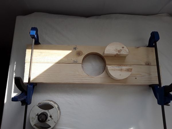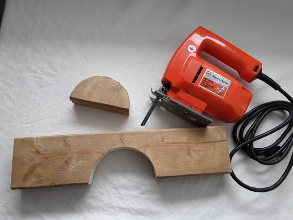 (2) Using a jigsaw, cut two half-circle exit holes. Each one should be big enough that the hatchlings can quickly exit the nest protector. We cut the openings 2" high and 4 -1/2" wide. Cut the 1st half circle in one of the 24" pieces of cut lumber and the 2nd half circle in one of the 27" pieces. Each nest protector must have at least two cut-out holes for the hatchlings to exit the nest protector. Please use safety goggles and earplugs to ensure a safe and successful construction process.