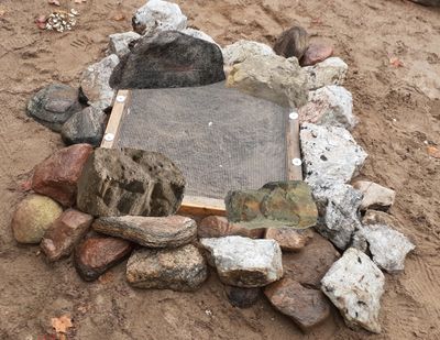 When hammering the rebar into the ground, even if the soil underneath doesn't feel as firm as hoped it might be, driving the length of rebar deep into the ground will help prevent the nest protector from being moved horizontally. We recommend placing hefty rocks on the four corners of the nest protector to alleviate possible verticle movement. There is no guarantee this method will deter predators; a determined predator could dig under a nest protector easily if deterrents don't put them off. However, most often, a nest protector anchored and secured in this way should create enough resistance that an animal looking for an easy meal may be disappointed and move on.