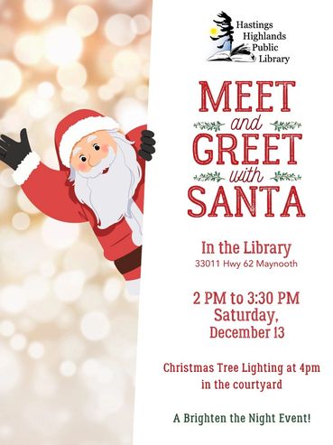 Santa will be at the Hastings Highlands Library from 2:00 to 3:30 pm.
